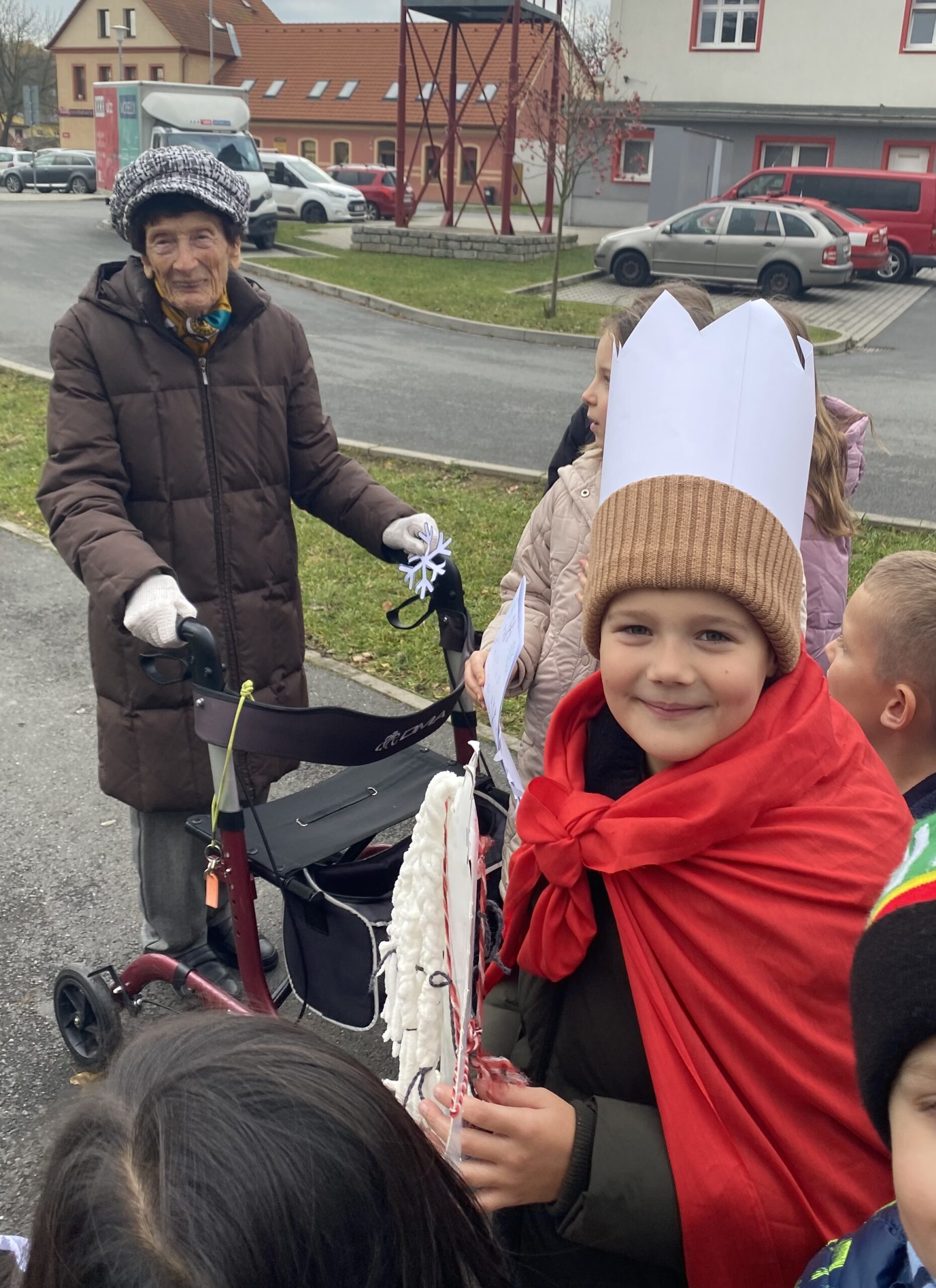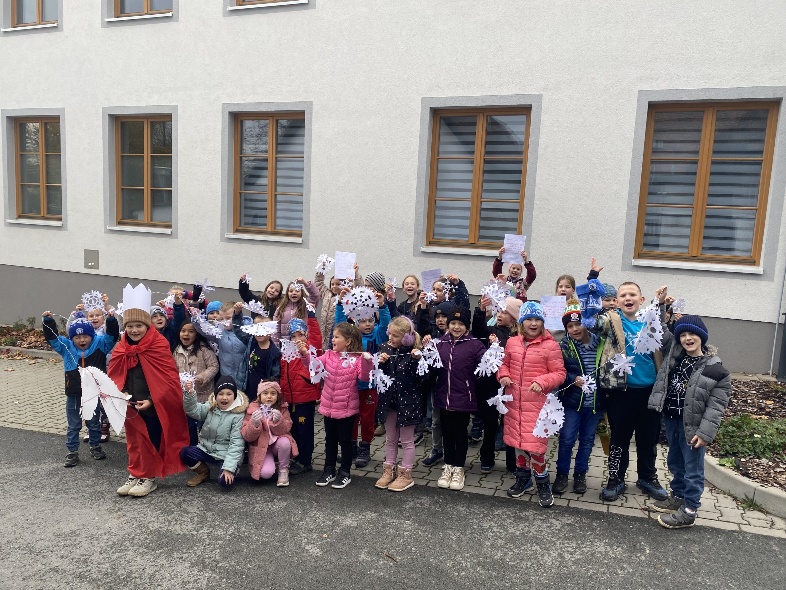 Na den sv. Martina jsem se vypravili s žáky “modré a červené” družiny na vycházku po obci s prvními vločkami sněhu, které jsme v družinách vyrobili z papíru. Navštívili jsem DPS Baculus, kde jsme místní seniory a seniorky potěšili básničkami a písničkami. Děti, babičky i dědečkové si alespoň na chvíli užili radost z návštěvy a společně prožitého času. Jako bonus předali naši žáci každému vločku, aby měli senioři první vánoční výzdobu.